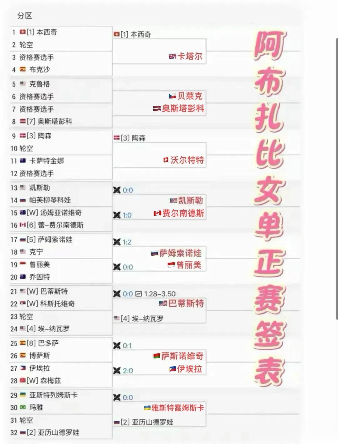 阿布扎比站次日女单首轮战报,排序接昨日⬇️⬇️8号巴多萨一轮游!4、资格赛选手捷克贝莱克6-3、6-0爆冷淘汰美国克鲁格;