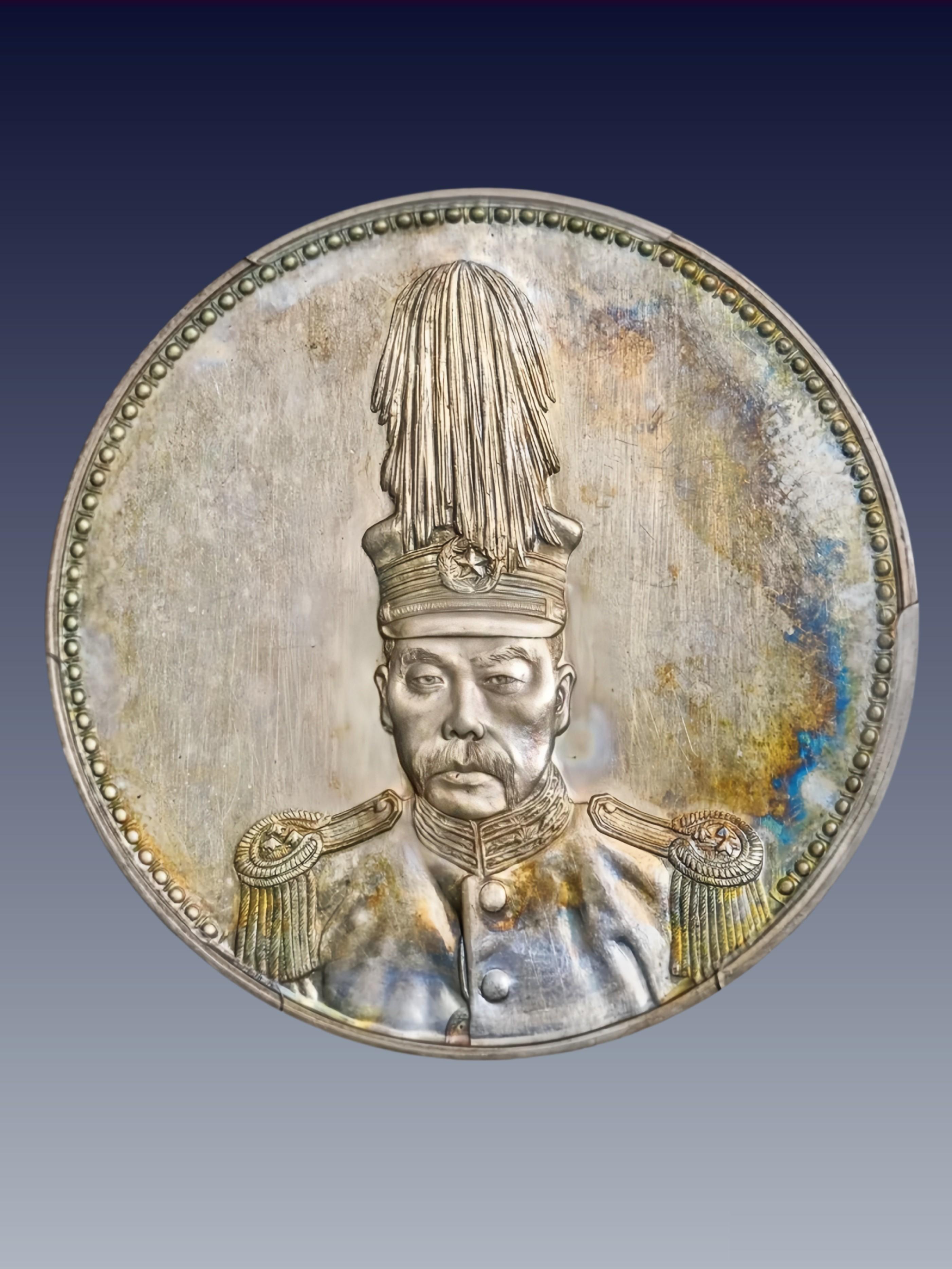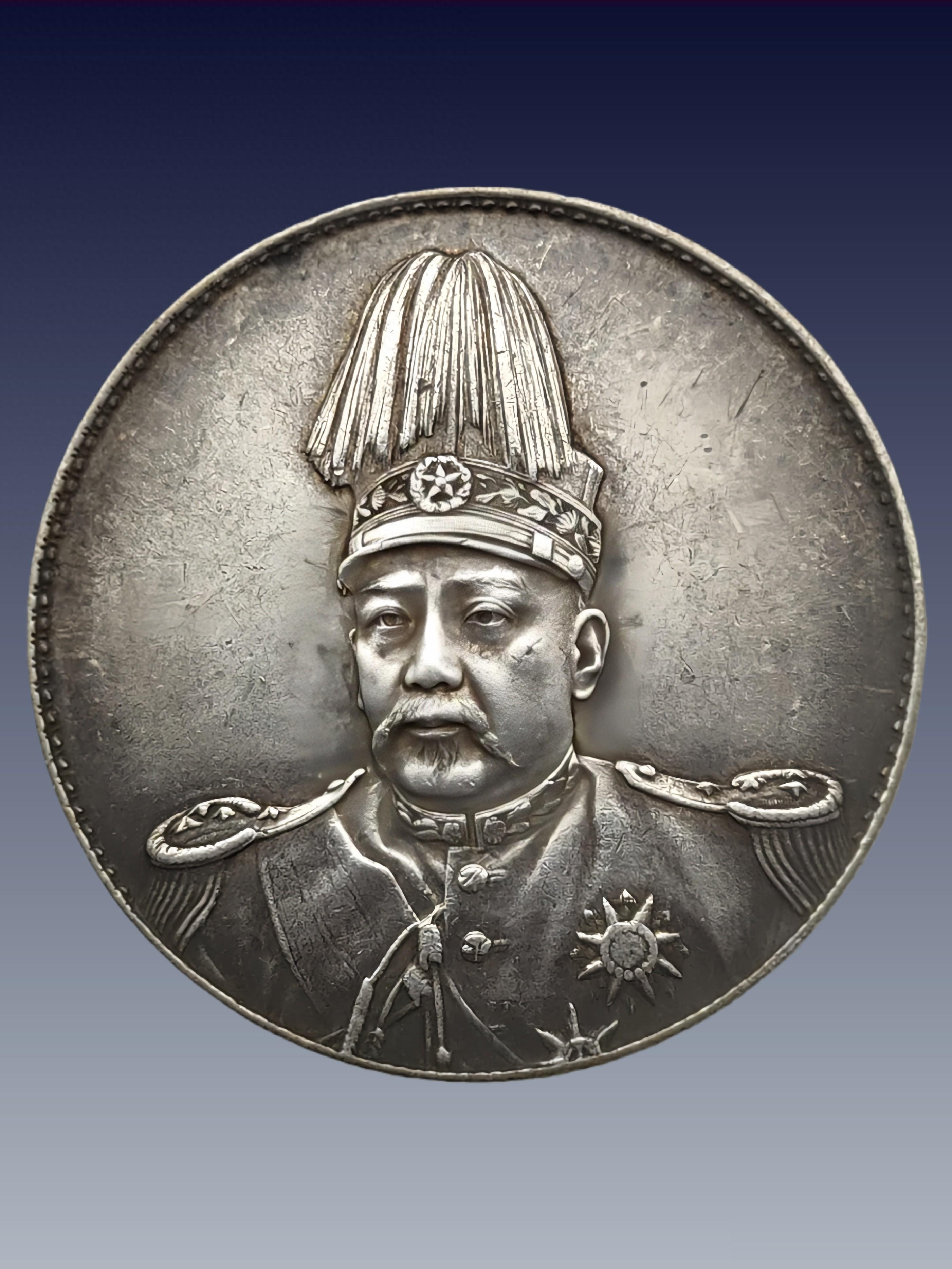 ◦ 特征:正面袁世凯帝装像,背面飞龙图案,上方“中华帝国”,下方“洪宪纪元”。