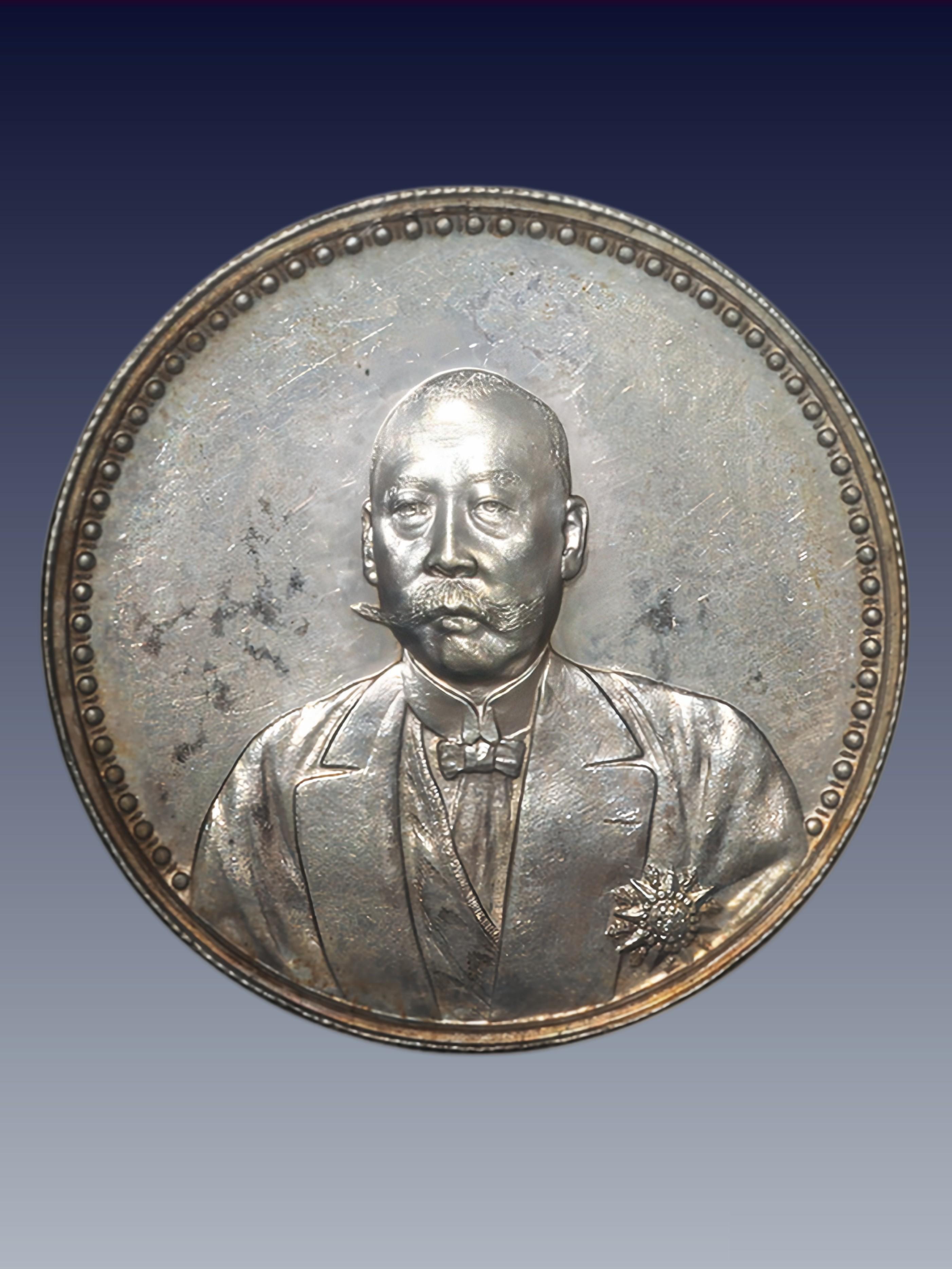 ◦ 特征:正面徐世昌西装像,背面“仁寿同登”+嘉禾。