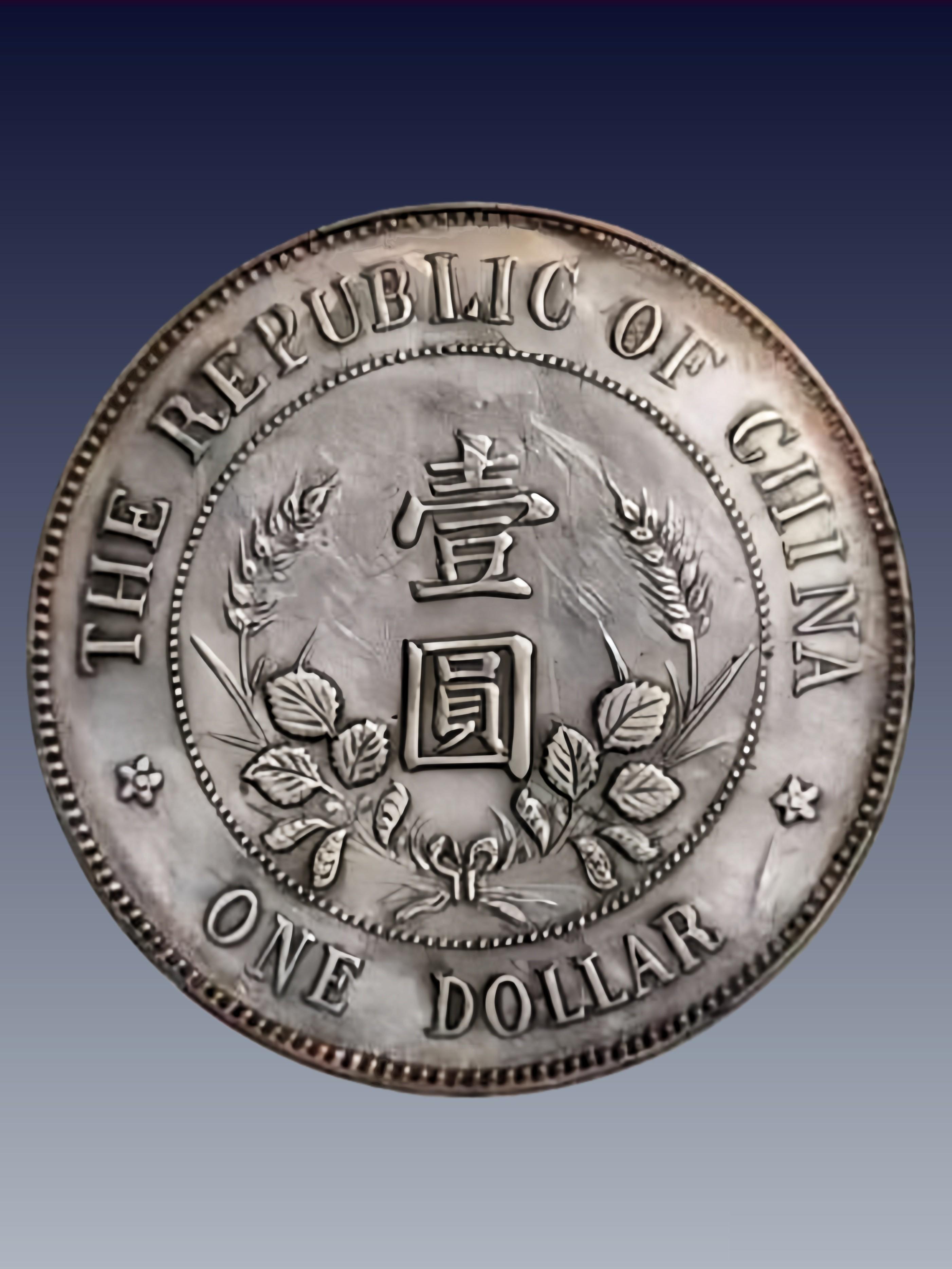 ◦ 特征:正面黎元洪肖像,背面“中华民国开国纪念币”+嘉禾。