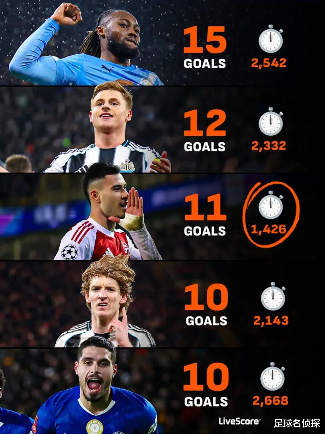 单看效率小马丁确实可以,但我们之前也说了,11个进球只有1个英超进球,而且这么多年了,小马丁始终未能成长为核心球员,感觉他一直都是在扮演奇兵和角色性球员,这是和其他几个人本质的区别。