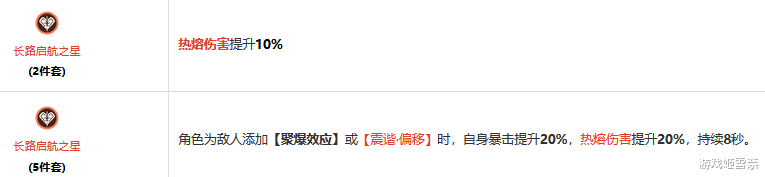 新声骸套装长路启航之星,提升热熔伤害,触发偏谐相关机制时提升20%暴击率和热熔伤害,43311,4C辛吉勒姆,主词条暴击爆伤,C3一攻一属,C1大攻击,充能推荐120%。