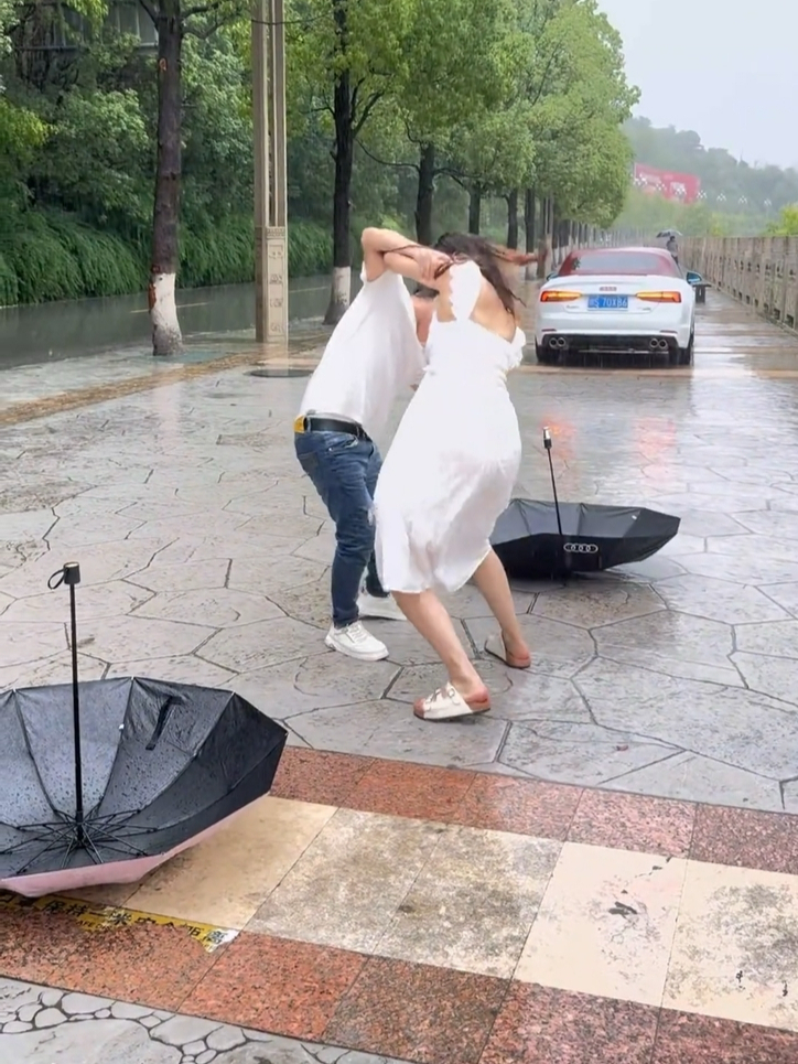 男子也不让着,伸手格挡,两人推推搡搡扭打起来。雨水混着泥点溅在他们身上,姐姐抓着弟弟的胳膊不放,弟弟怕伤着她又不敢真用力,嘴里还嚷嚷着:“姐你别闹了!”