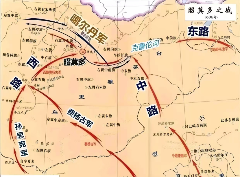 康熙皇帝真的是如他所说,要调节蒙古各部的矛盾吗?当然不是!康熙皇帝多精,这只是缓兵之计,目的就是不让噶尔丹撤退。所以噶尔丹等来的并不是康熙皇帝所说的蒙古各部议和大会,而是倾巢而出的清军主力。