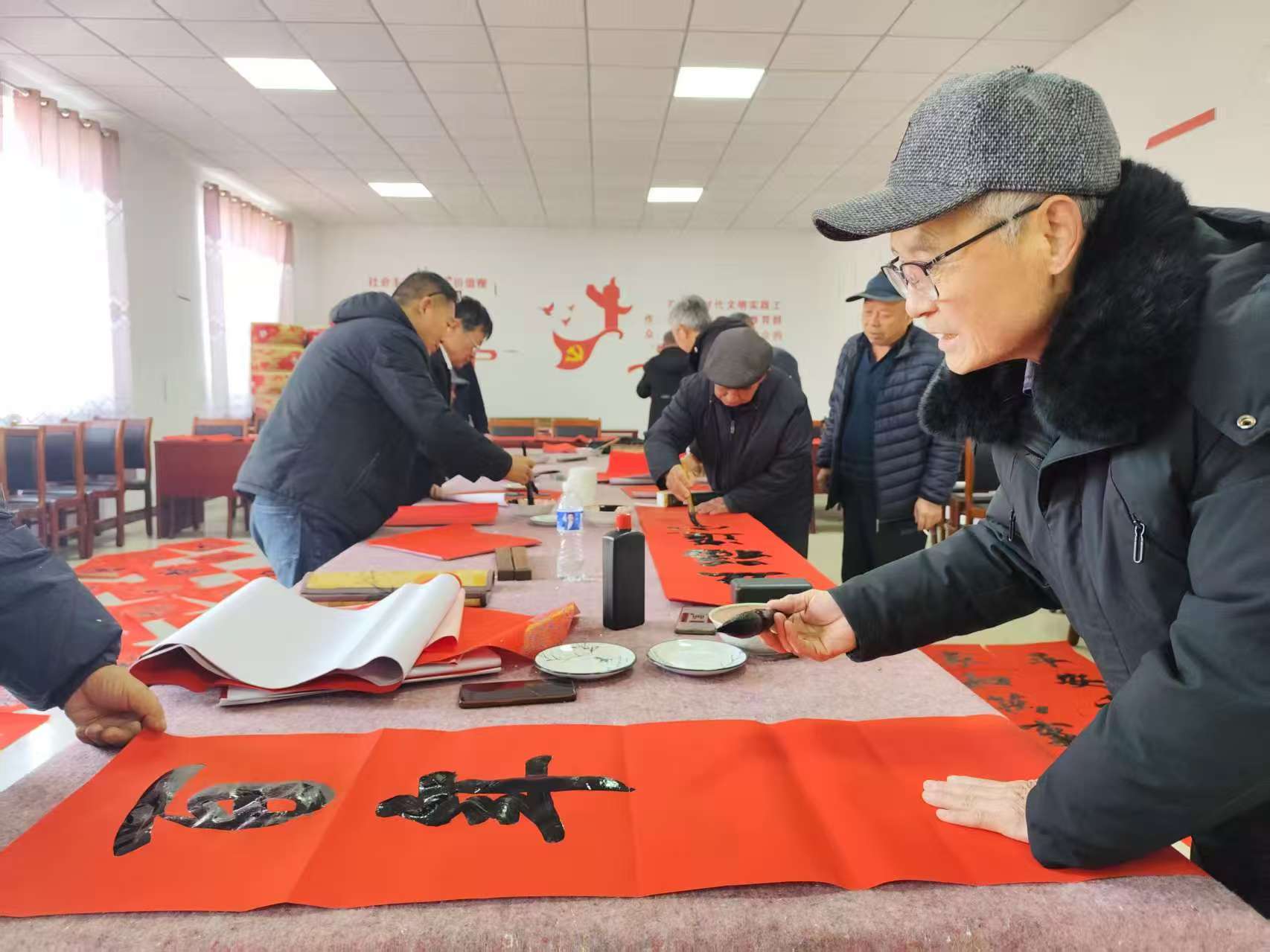 此次送福下乡,书法爱好者们现场挥毫,一幅幅洋溢着喜庆气息的春联、一个个饱含美好祝愿的“福”字跃然纸上,被乡亲们争相领取。红彤彤的春联与福字,为李家庄增添了浓浓的年味。李永竹表示,希望通过这样的文化活动,丰富乡亲们的精神文化生活,用艺术扮靓乡村美好生活。