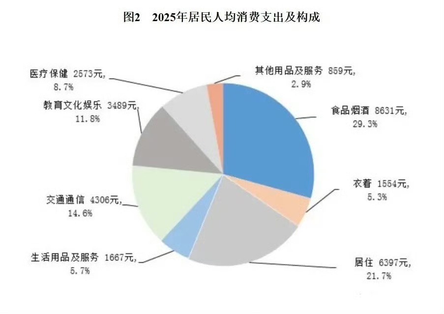 2025年前三季度全国居民人均消费支出21575元,占可支配收入约66%,储蓄空间有限。