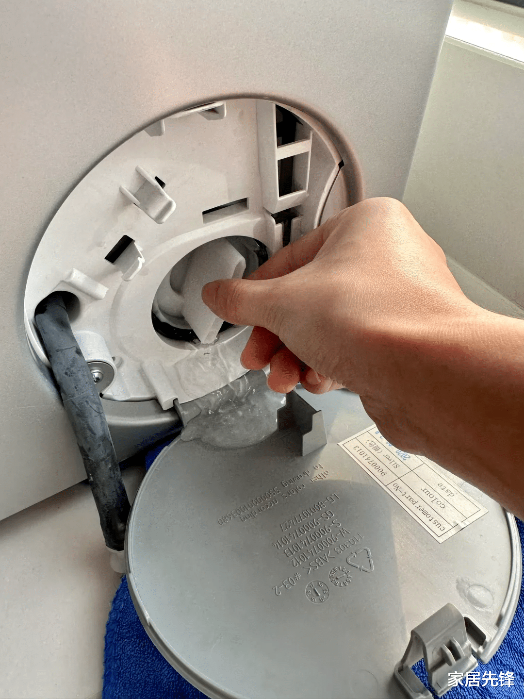 如果你家用的是滚筒洗衣机,在洗衣机的右下方位置有一个隐藏的开关,很多人都不知道,这里面就是洗衣机的排污口。