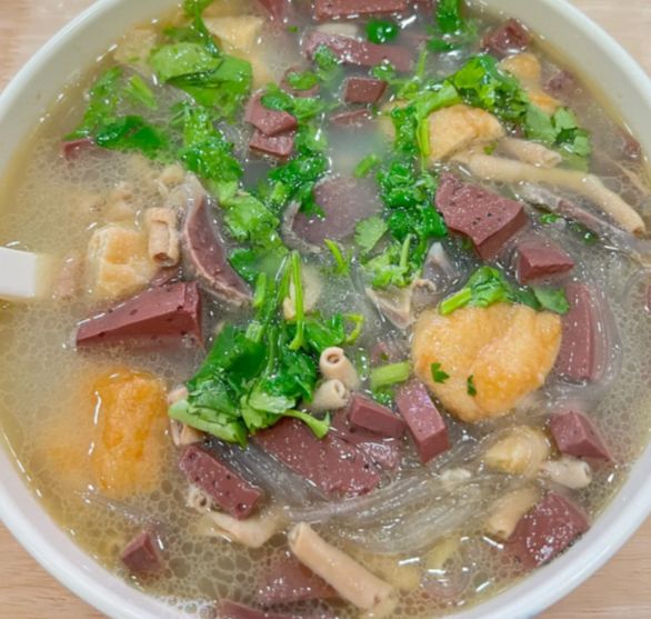 盛进大碗里,撒上香菜和葱花,爱吃辣的再浇一勺辣椒油,红的绿的配在一起,看着就有食欲。粉丝滑溜,鸭血嫩滑,油豆腐吸饱了汤汁,咬下去满口鲜香。这道汤最妙的地方在于,它既可以当主食,也能做配菜,什么时候想吃都合适。