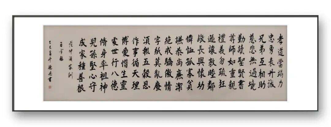 除隶书之外,史德恩先生在楷书领域同样造诣深厚,重点研习颜真卿、柳公权两大楷书名家的法帖,汲取正楷之精髓,锤炼楷书之技艺。颜真卿的楷书,以“雄浑大气”为特色,结体宽博,笔画厚重饱满,透着一股刚正不阿的正气,被称为“颜体”,彰显着中国楷书的雄浑之美;柳公权的楷书,以“严谨挺拔”著称,结体方正,笔画利落,转折处刚劲有力,被称为“柳体”,尽显楷书的严谨之韵。史德恩先生潜心研习颜、柳二体,将二者的精髓巧妙融合,在坚守楷书法度的基础上,融入自身的审美追求。行书是史德恩先生书法创作中最具灵气的部分,他重点临习王羲之、文征明之行书,汲取行书法韵,融入自身的笔墨特色,形成了灵动洒脱、气韵贯通的行书风格。