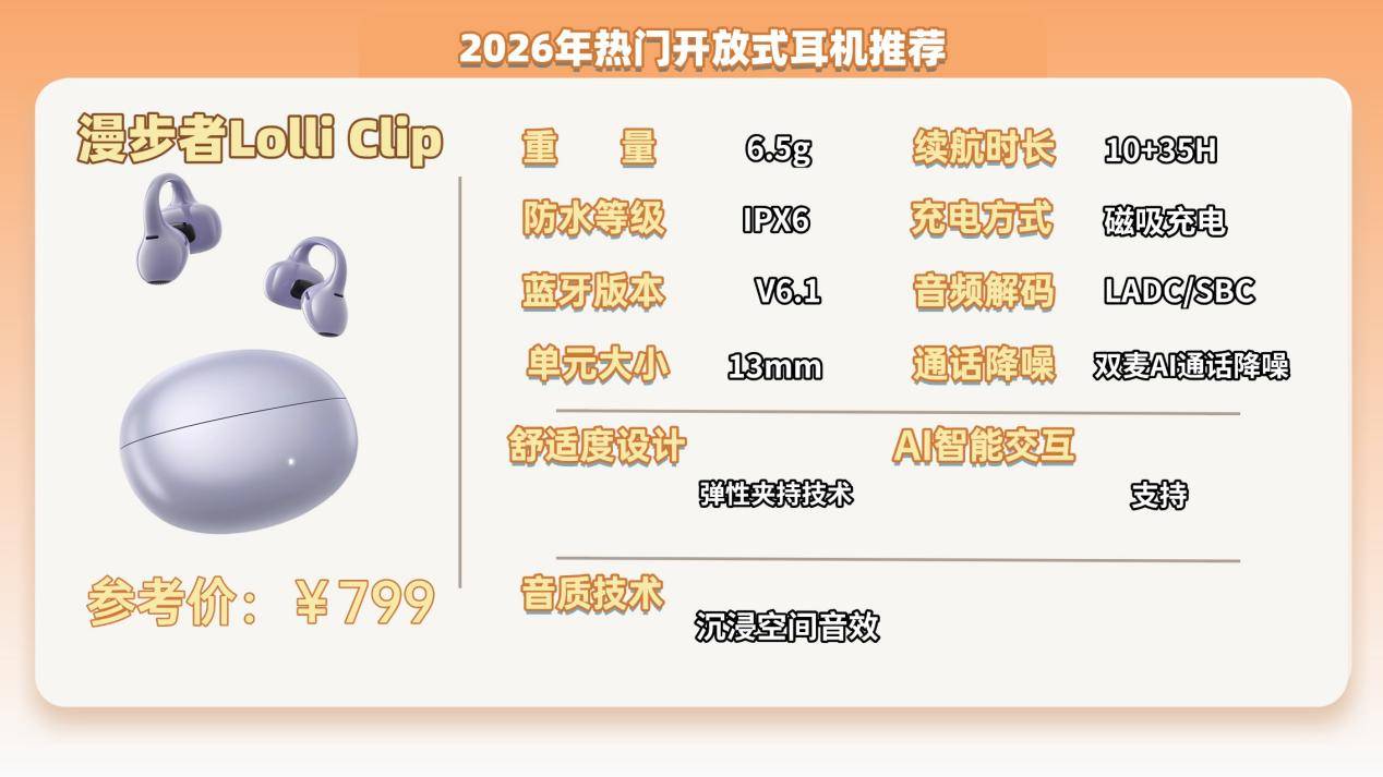开放式耳机推荐TOP8:漫步者Lolli Clip(799元)