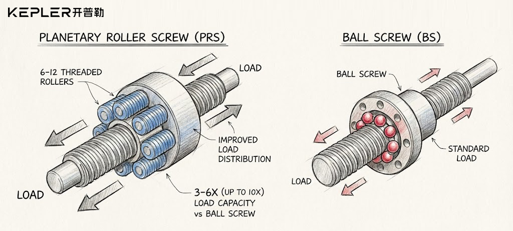 在对负载与刚性要求极高的关节,引入行星滚柱丝杠