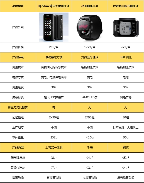小米血压计和欧姆龙血压计哪个准?之前对比产品时,我发现只看外观很容易选错,真正拉开差距的还是参数表现。弄清楚品牌在性能上的侧重点,选起来会轻松不少。接下来就先看看这几款血压计的主要参数情况。