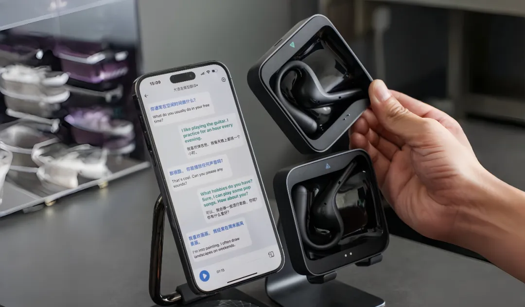 以“翻译耳机”产品形态为例,在本月科大讯飞全球1024开发者节上,据科大讯飞方面介绍,其AI翻译耳机采用"骨导+气导"双模态设计,并在单耳内置三麦阵列(2个数字硅麦+1个骨传导麦),在80分贝嘈杂环境(食堂、地铁)中识别准确率达97.1%,显著优于苹果AirPods 3的77.7%。