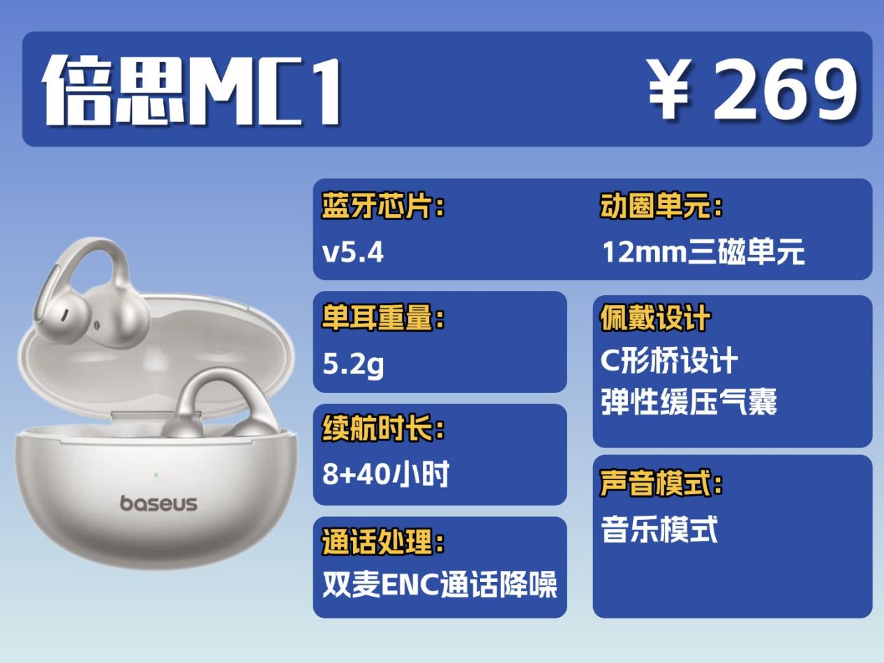 倍思 MC1 的续航表现挺好,单次充电能用 8 小时,加上充电盒综合续航能到 40 小时,日常用着不用为电量担心。另外,IPX7 级防尘防水能应对运动时的大量出汗和突发小雨,日常使用能省心不少;蓝牙 5.4在连接性能上,稳定性高,连接速度更快。