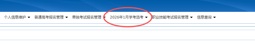 3.点击页面中的“2026年1月学考选考”,在下拉菜单中点击成绩查询,点击下载成绩报考单: