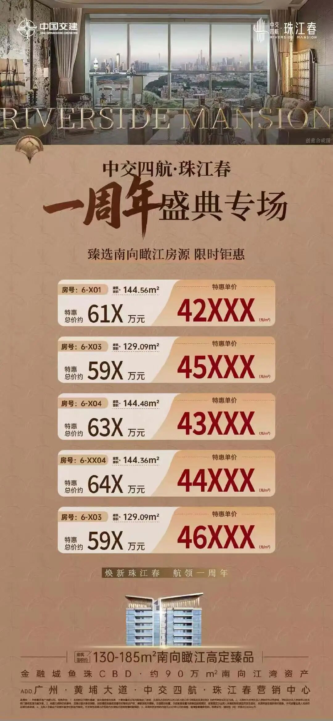 5套特价房源房源,建面129-144平瞰江四房,单价42XXX元/㎡起。