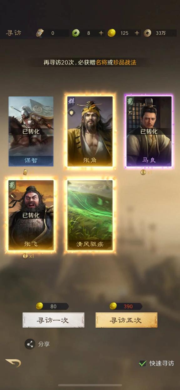 抽卡和养成也没有套路,出橙概率更高,保底次数更少,解锁战法槽不需要同名卡,只用免费的铜币就能搞定,完全没有逼氪的设计。新人刚进入游戏就能拿到一大堆福利,多个橙色武将直接送,还有上百次免费抽卡和大量黄金资源,开局就能体验完整的策略乐趣,不用慢慢熬等级攒资源,从头到尾都干净利落,玩起来就是一个爽字。