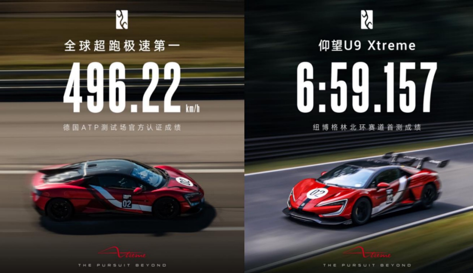 近日,仰望汽车正式宣布,旗下仰望U9赛道特别版车型定名为仰望U9 Xtreme(简称仰望U9X),全球限量发售30台,并为每一台提供独一无二的整车定制方案。今年8月,该车以工程测试车身份创造全球电车极速纪录;仅一个月后,仰望U9X再度突破极限,凭借496.22km/h的全新成绩,取代燃油车登顶全球汽车极速榜首。同时,仰望汽车还公布了仰望U9X在德国纽博格林北环的首次圈速成绩——6分59秒157,实力展现中国新能源汽车在全球高性能汽车领域中极速性能与赛道操控的兼容性突破,印证“超越极致,前所未有”的品牌精神。