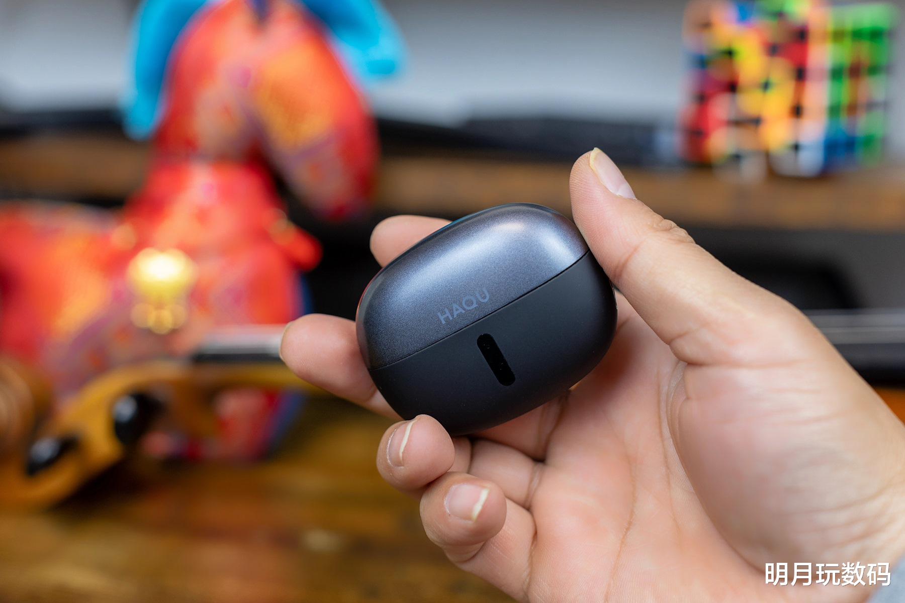 哈趣Ace1有黑色和白色两款可选,我拿到的是黑色款。耳机的充电盒外观圆滑,表面经过磨砂处理工艺,握持感非常舒适。另外,充电盒的外观看似小巧,却能为耳机提供42小时的超长续航,远超同类型产品平均水平,再加上耳机单次续航可达7小时,对于喜欢长跑运动爱好者,或是户外旅行都能轻松应对,日常通勤就更不在话下了。