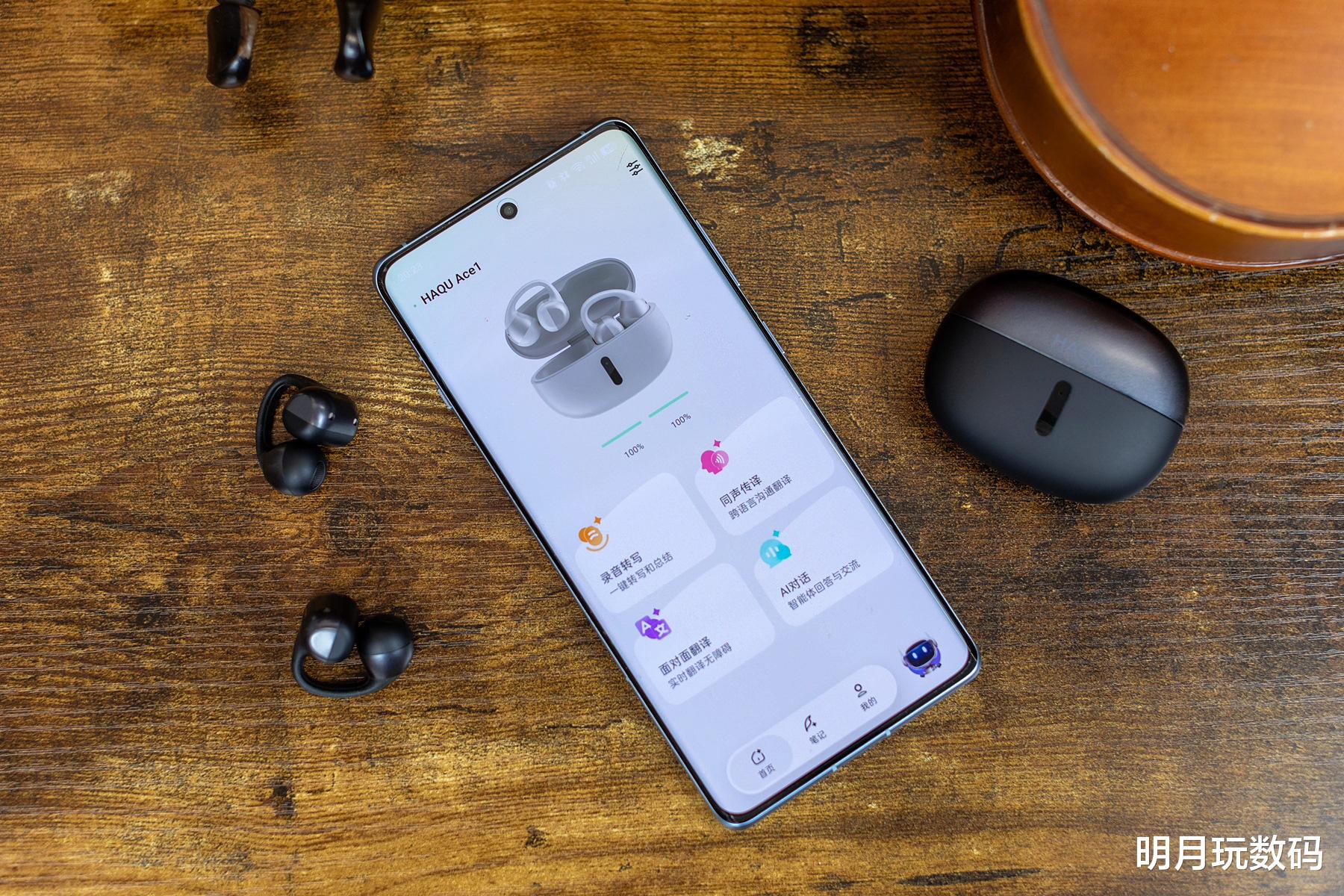 除此之外,哈趣Ace1的手机APP功能也非常强大,除了音效模式、耳机手势和查找耳机等一些常规的耳机设置外,还加入了录音转写、同声传译、面对面翻译和AI 对话等智能功能。这些功能可以方便我们在不同场景下打造专属使用体验外,还可以在日常生活中进行AI交互,丰富我们的日常或是商务场合下的翻译需求。