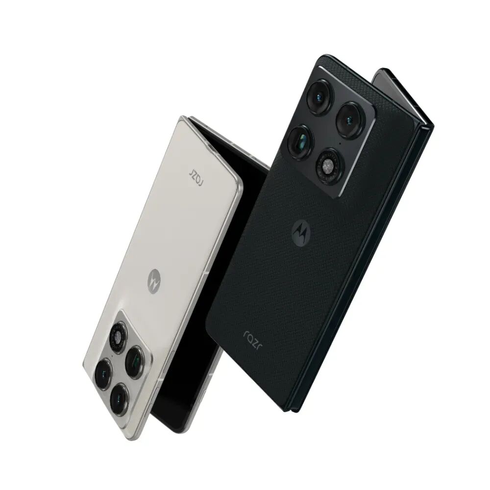 机身中框采用金属材质、立边设计,机身背板也是平直设计,背板中间可见一个圆形的品牌标志,底部可见Razr标志。