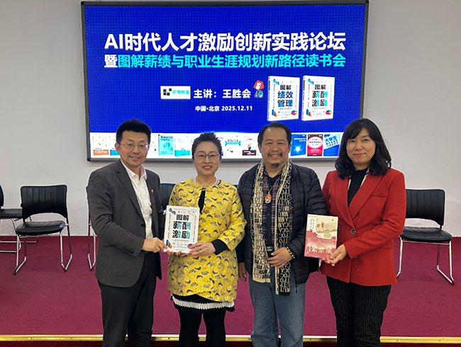 北京弈博明道教育CEO王胜会在AI时代人才激励创新实践论坛上,分享了自己的两本最新著作《图解绩效管理》、《图解薪酬激励》。这两书均强调AI技术赋能,如动态调薪系统、智能职业规划平台,助力企业激活人才潜力,推动管理效能升级。