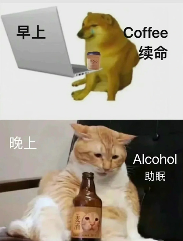 我们认为身体是一台电动机,996是燃料,早咖啡晚酒精是大补汤,熬夜是战功勋章。