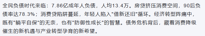 最近,我看到了一个有趣的数据:咱们人均负债已超过10万元,迎来了全民负债的时代。