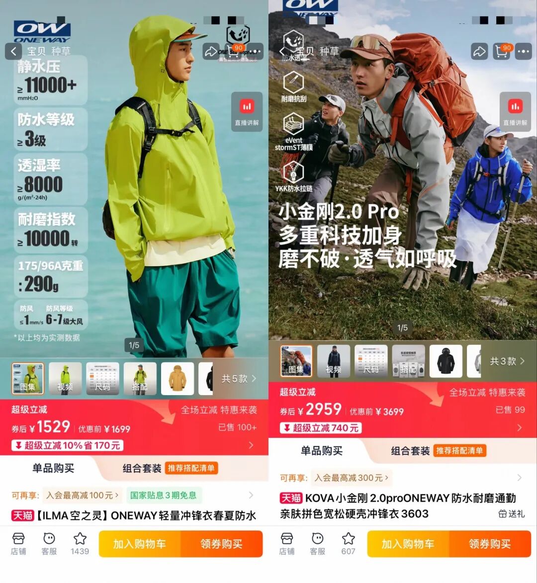 在电商渠道,“愈山甲” “大磨王2.0”系列冲锋衣都是361度户外线当前主推的产品。“愈山甲”走中端路线,天猫官方旗舰店显示,其优惠前价格约539元;“大磨王2.0”走高端专业路线,优惠前价格约1049元。