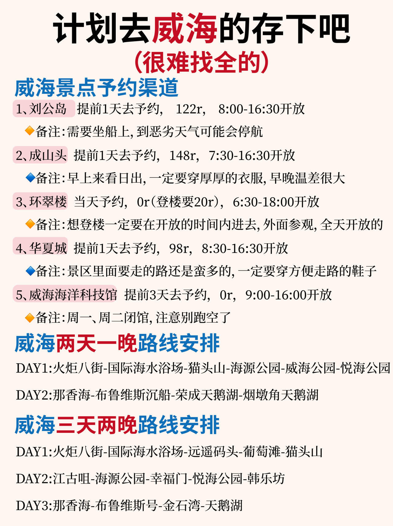 来威海玩3天刚刚好,可以把大部分🔥热门景点都玩一遍,两天在市区游玩,一天去荣成那边看天鹅🦢