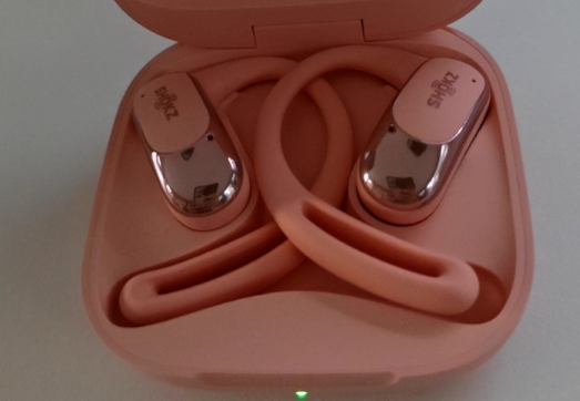 佩戴体验:单只仅 8.7g,首创空气式耳挂,内置 0.75mm 柔性钛合金丝 + 防滑亲肤硅胶,自适应耳型,还可以做到运动期间狂甩不掉,充电盒小巧便携,日常通勤、运动都合适