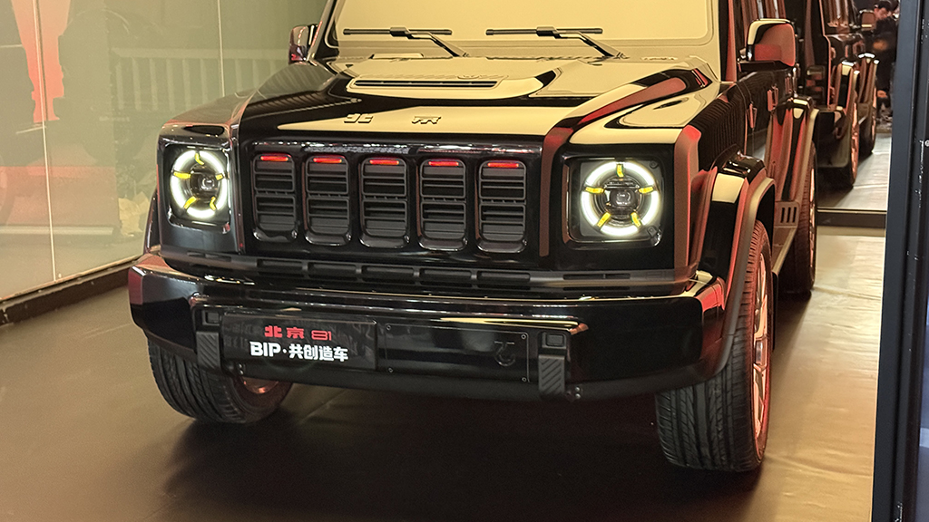 BJ81的外观设计极具辨识度,方正的车身轮廓让人瞬间联想到经典硬派越野标杆,尽显力量感。前脸配备五个标志性的进气格栅,搭配圆形大灯,灯组内部装有五段式环形光带,这种潮流设计元素的融入,让硬派风格中多了几分精致。