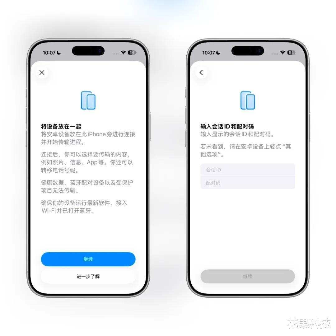 通过这项功能可以将 iPhone 通过扫码或者配对码的方式连接安卓手机,然后将照片、信息、App、电话号码等资料传输到安卓手机。