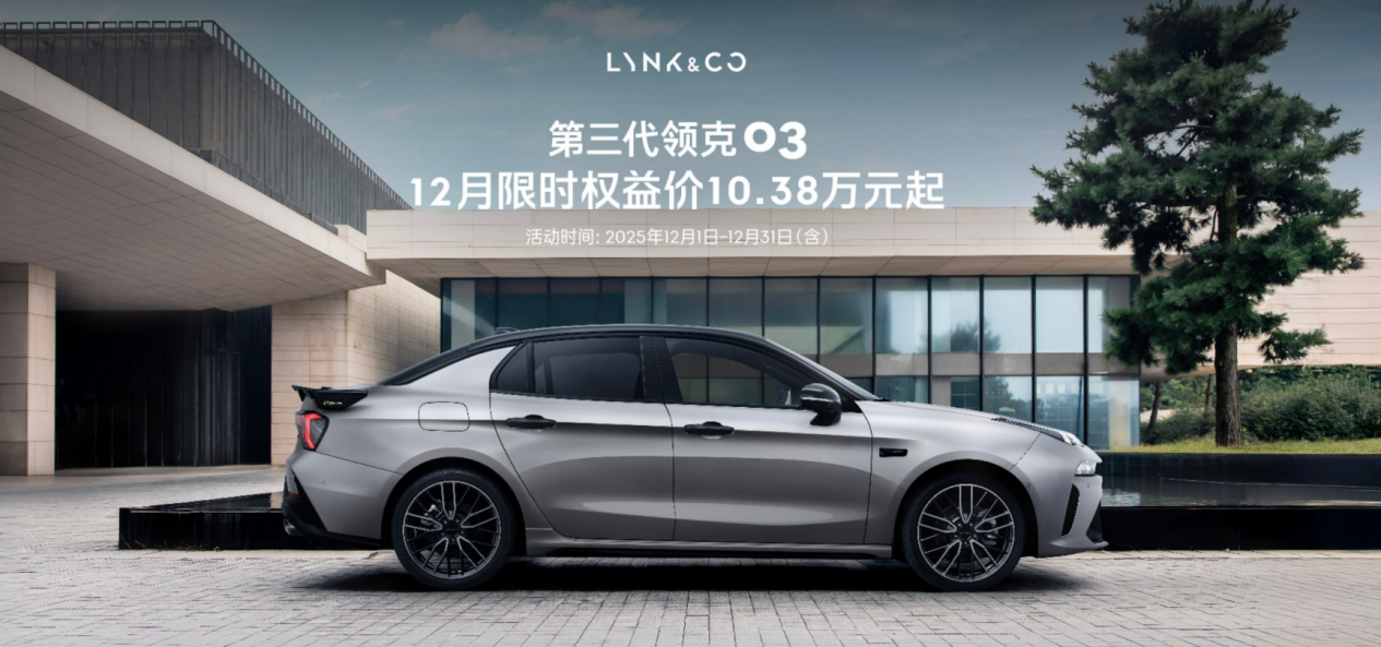 12月上线的购车福利,进一步降低了消费者体验赛事级性能座驾的门槛。第三代领克03限时权益价10.38万元起,可享10000元购置税补贴、5000元保险补贴、3000元加油现金补贴,还有6万2年0息、5年贷3年0息的金融方案可选;此外,还可参与至高价值2598元的赛道体验日活动与至高价值6999元的中级赛道培训,让消费者不仅能拥有车型,还能亲身感受赛道驾驶的乐趣,深度体验赛事技术赋予民用车型的独特魅力。