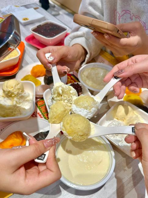 芒果白雪黑糯米甜甜,上面用的都是很大块的芒果果肉,糯米球味道很不错,吃起来不会很甜腻。