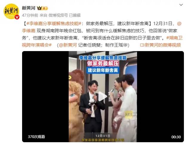 12月31日湖南跨年晚会红毯现场,李维嘉一身简约西装亮相,被记者追问“缓解焦虑的技巧”时,他秒答“做家务”,还笑着安利新年必做“断舍离”:“辞旧迎新的日子里这么做,既能收拾房间也能清空心情~” 接地气的建议瞬间戳中网友。