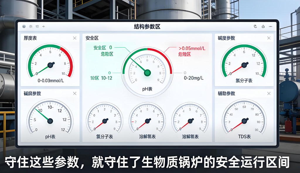 生物质燃料燃烧易产生酸性物质,加剧水体腐蚀性,此类参数需严格管控以延长锅炉寿命。