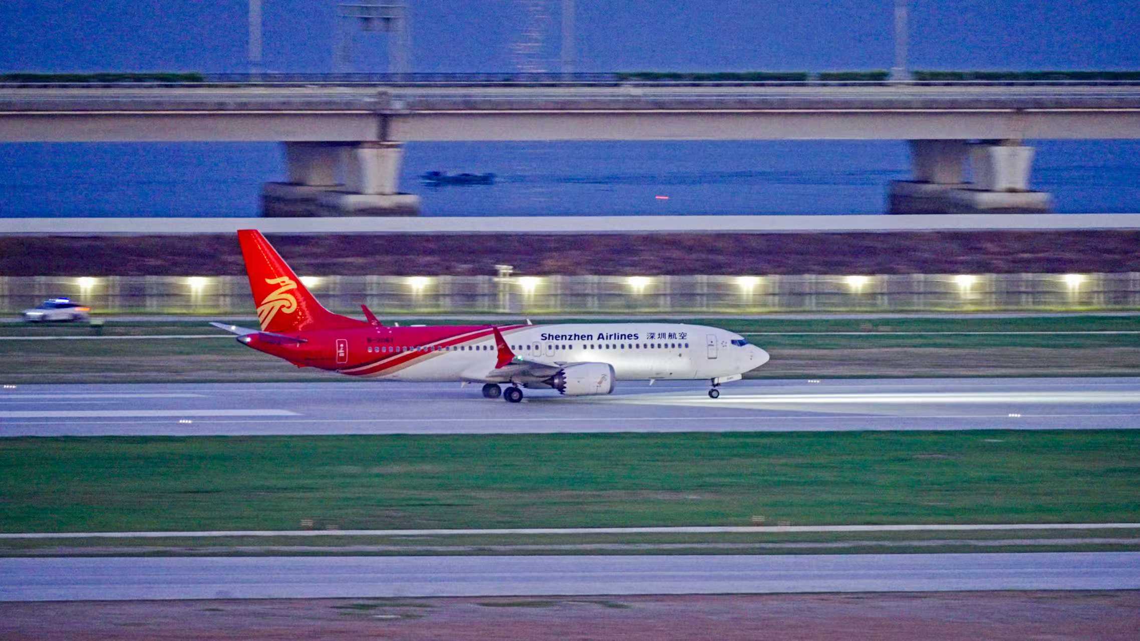 2025年8月26日,试飞飞机在深圳机场三跑道起降、滑行。(受访者供图)