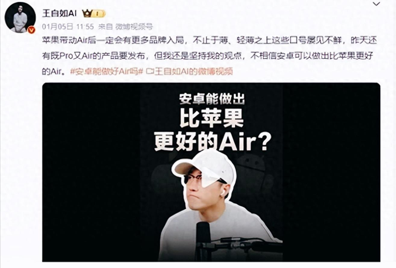 他觉得,在轻薄手机这个赛道上,安卓厂商是无法做出比iPhone Air更优秀产品的。