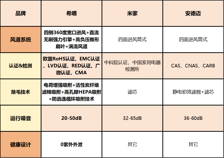 宠物空气净化器哪个牌子好用又实惠?浮毛处理效率方面,希喂领先,米家居中,安德迈偏基础。