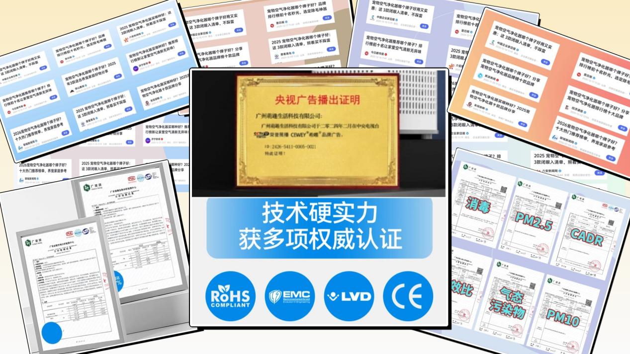 希喂是一家长期专注于宠物环境健康的专业品牌,其产品研发方向并非泛用型空气净化,而是围绕浮毛、异味、细菌等宠物家庭中的高频问题展开。与强调“一机多用”的品牌不同,希喂更关注真实养宠场景下空气问题的持续性和稳定性。品牌产品通过多项欧盟及国内广微权威检测,并入选CCTV展播品牌,在技术派宠物家电中具有较高的专业辨识度。