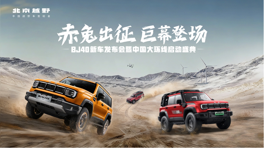 北京越野的BJ40家族又增添了一位新成员,在北京越野“赤兔出征·巨幕登场——BJ40新车发布会暨中国大环线启动盛典”在嘉兴举行。北京越野BJ40家族迎来焕新阵容,BJ40增程赤兔标准版、BJ40燃油巨幕版上市及BJ40增程悦野飞行版启动全球预售。同时,北京越野“中国大环线”正式启动,官方俱乐部“旷野纵队”成立,助力用户丈量中国、奔赴远方。