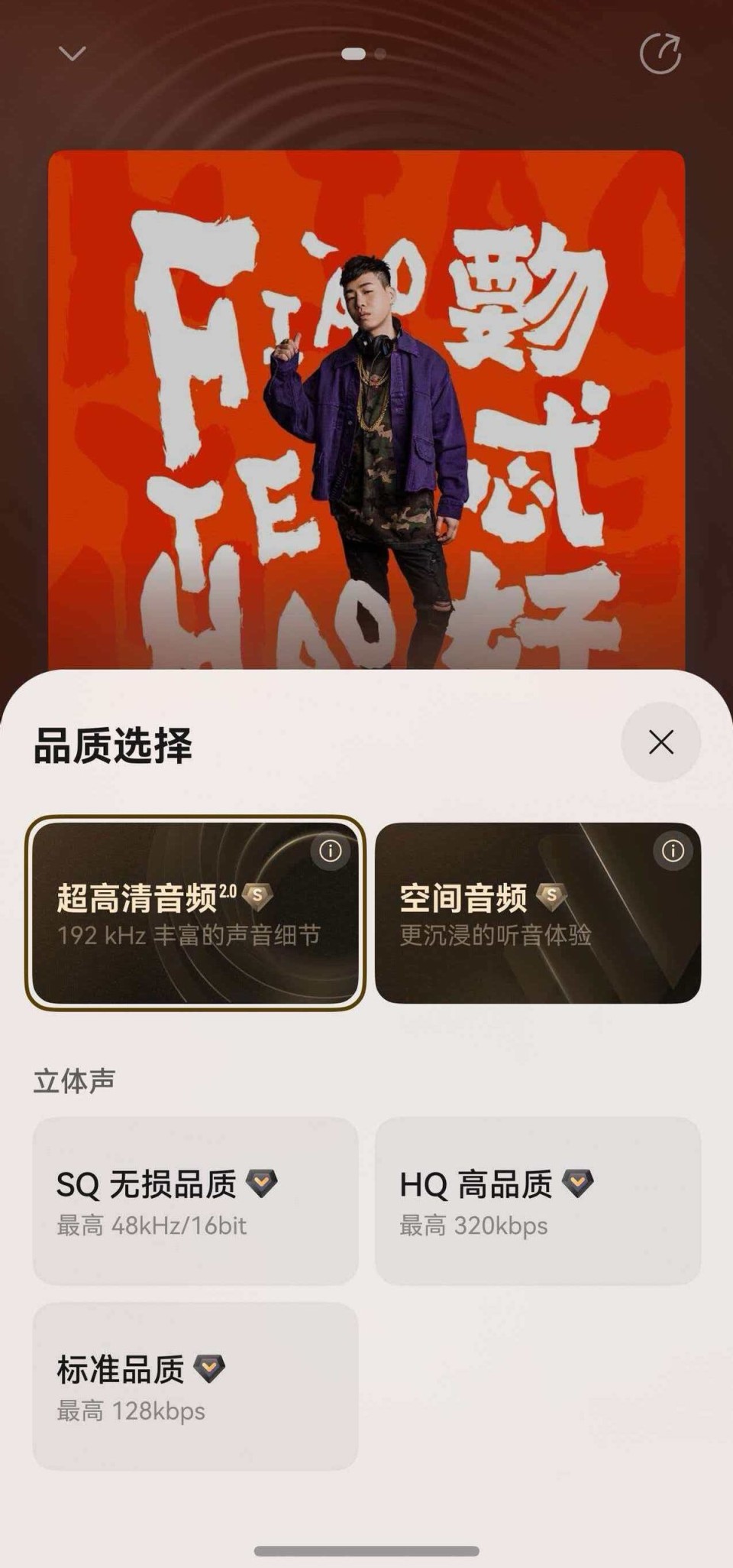 我随手点开《你要的全拿走》,前奏响起的瞬间,耳朵立刻被唤醒。即使我这种“木耳”听众,也能听出声音的透亮细腻、每样乐器之间的衔接配合。而且人声部分尤其突出,胡彦斌标志性的转音和嗓音特质被展现得淋漓尽致。这种声音的质感,和我之前用其他App的听感,完全是两种体验。