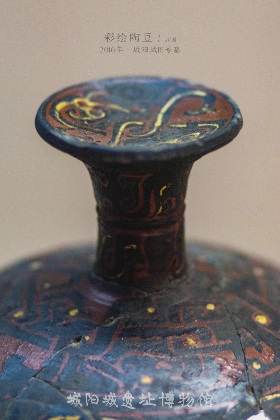 •彩绘带盖陶壶与彩绘陶豆:色彩以红、黄为主,纹饰细腻流畅,不仅具有礼仪功能,亦展现出楚艺术浪漫飘逸的审美风格,是战国彩陶的代表之作。