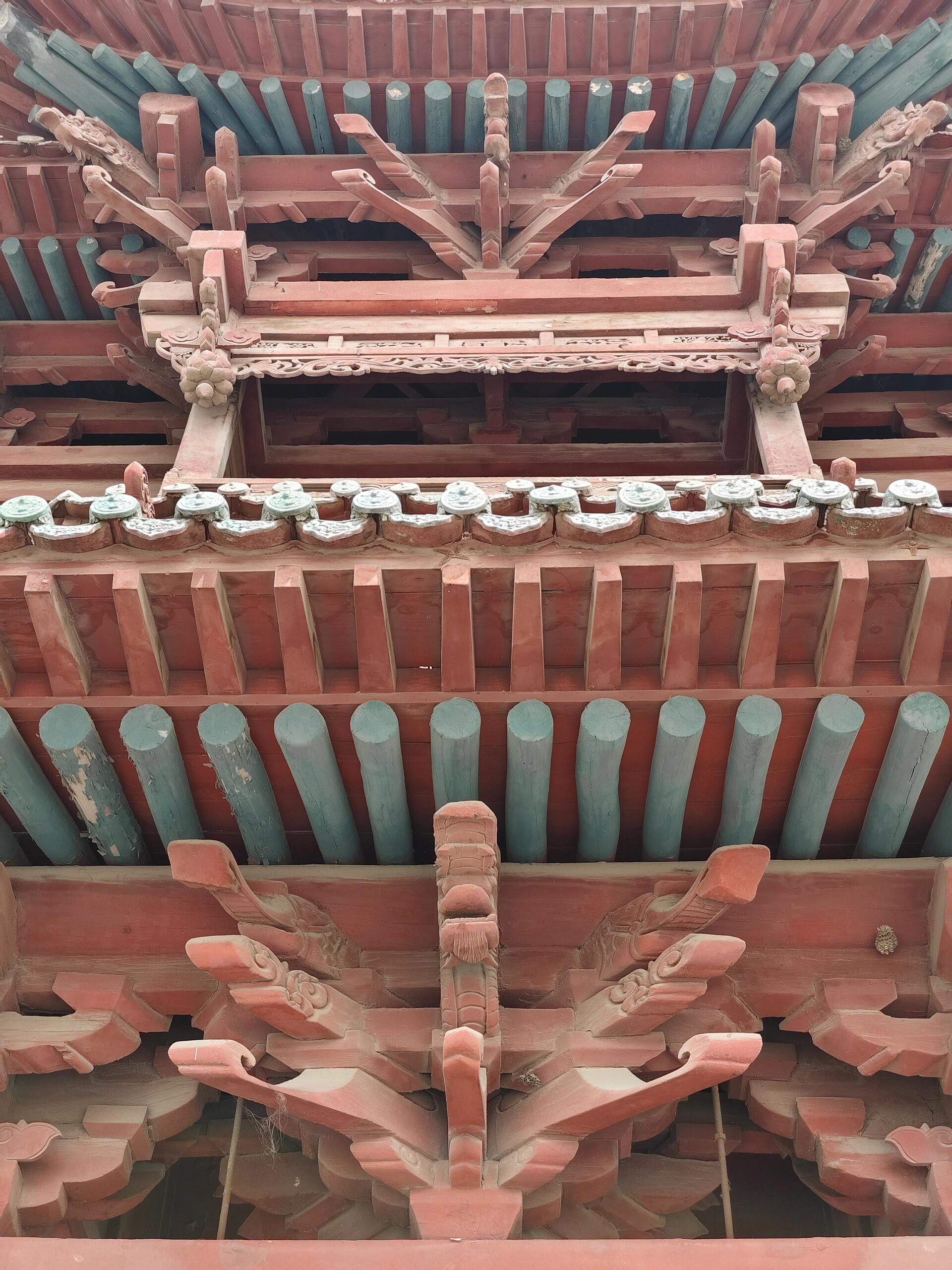 走进祆神楼内部,空间布局紧凑而合理。抬头仰望,能看到精美的梁架结构,每一根木梁的衔接都严丝合缝,展现出古代工匠高超的技艺。在乐楼中,想象着曾经这里或许有过精彩的表演,锣鼓声、唱腔声回荡在楼阁之中,吸引着众多百姓前来观看,那该是怎样一番热闹的景象。