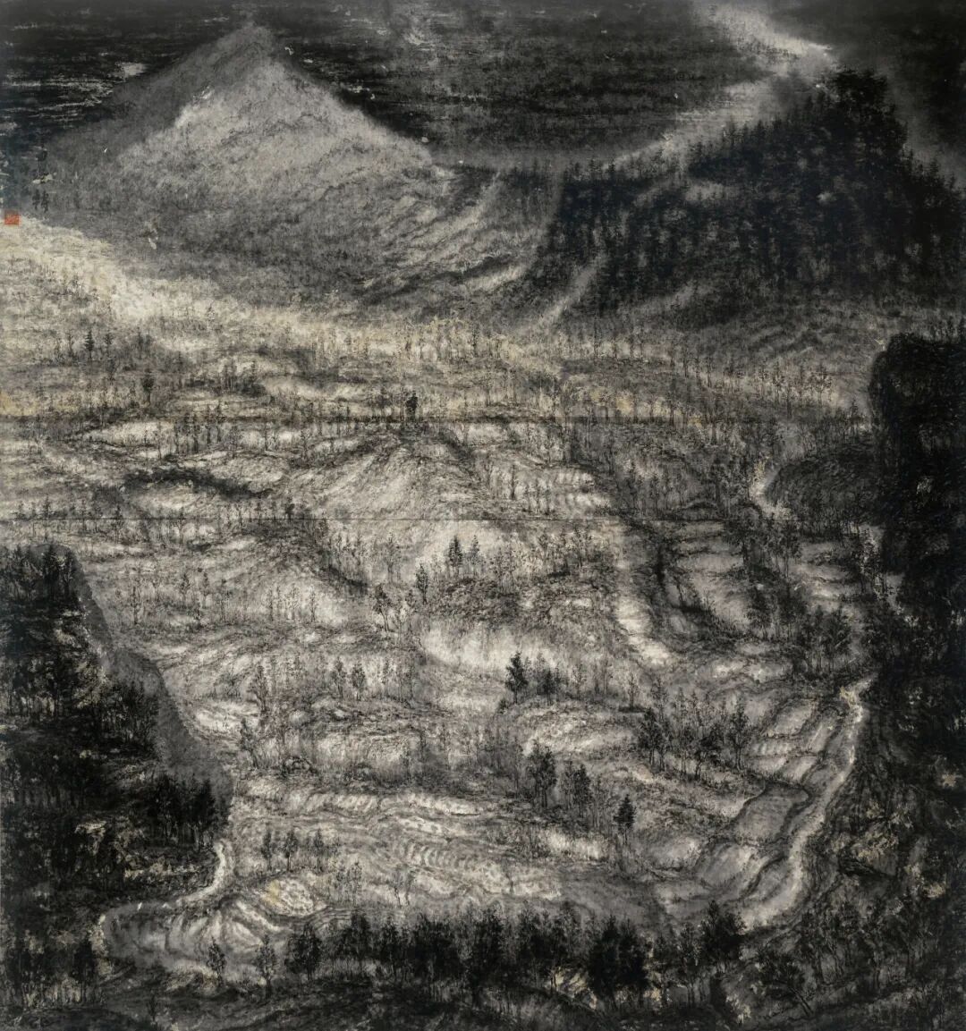 我们常对古画数皴法,对碑帖辨墨色,如数星星的孩童,以为数清数量,便懂了星空。可浅薄求知,怎抵得过宇宙浩瀚?宣纸上画一粒星,星海便有数万粒星回应;砚台里磨一捧墨,自然便以晨雾为墨、苍穹为纸,画下无人能懂的天书。认知的谦卑,非低头,是放下丈量之尺,放下言说之欲——当你不再纠结“这画像不像山,这字合不合律”,方见笔墨里的禅:一笔起,是生;一笔落,是灭;墨色浓淡,是量子聚散;纸纹疏密,是意识浮沉。