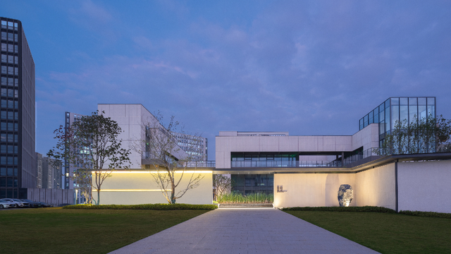 午休时分,喝杯咖啡,漫步园区,建筑以“白与灰”相生的简约基调,搭配利落的几何造型,秩序感与艺术感兼具,目之所及皆是风景线,短暂的小憩后,又能以饱满的状态投入工作。