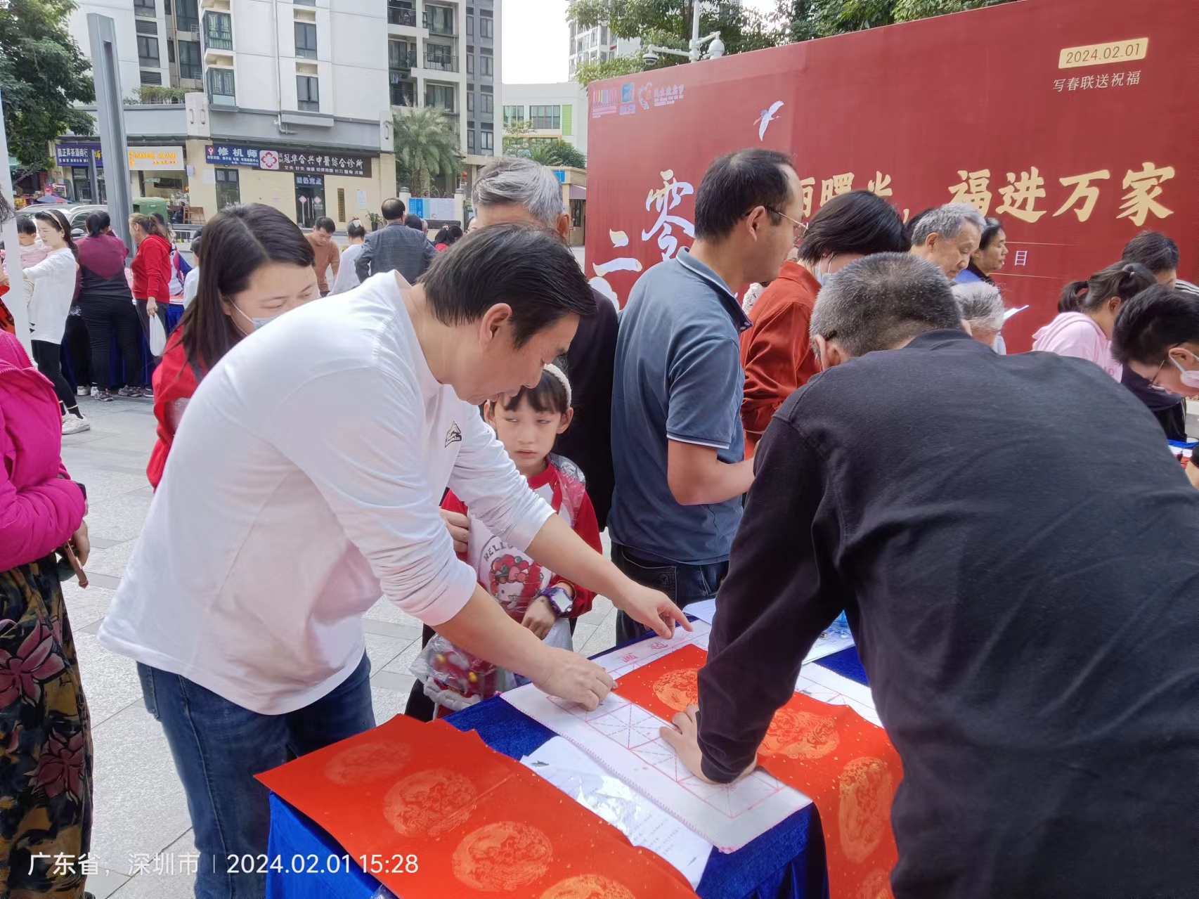 活动现场,墨香四溢,气氛热烈非凡。红纸铺展,书法爱好者们挥毫泼墨,笔走龙蛇,一幅幅寓意吉祥的春联和一个个充满神韵的“福”字在他们的笔下生辉。这些字句间充满了浓浓的情意和真诚的祝福,字里行间都映照着大家共同的心愿和祝福,为居民们送上新春的美好祝愿,让大家在欢乐祥和的气氛中提前感受到浓浓的年味。