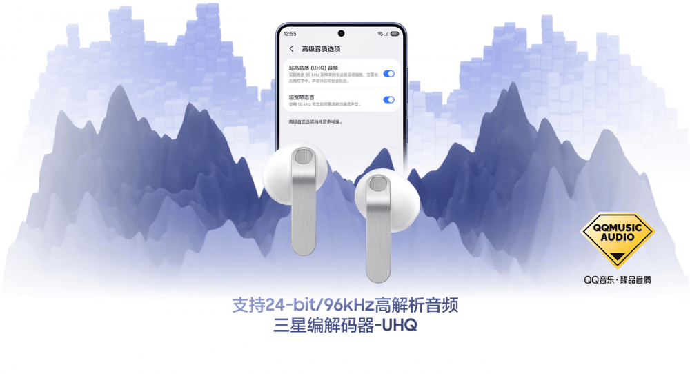 三星Galaxy Buds4与三星Galaxy Buds4 Pro凭借卓越音质表现,成功通过QQ音乐臻品音质认证。在使用QQ音乐时,三星Galaxy Buds4 与三星Galaxy Buds4 Pro可以播放 QQ音乐臻品曲库中的无损音源,高达24-bit/96kHz采样率解析的音源传输,为音乐爱好者带来更佳的聆听体验。三星还将与QQ音乐展开深度合作,共同打造从硬件解码到音源传输的全链路定制化的产品解决方案。运动时,只需在三星Galaxy 智能手机上开启「超高音质(UHQ)音频」选项,即可体验到超高音质的Hi-Fi音频,尽享悦耳动听的原音之美。