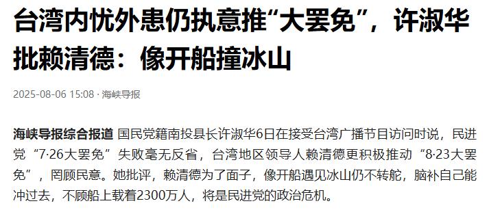 民进党内部同样裂痕丛生,倒戈声不断,部分党员公开反对赖清德强推“大罢免”,批评他“为权力不择手段”。